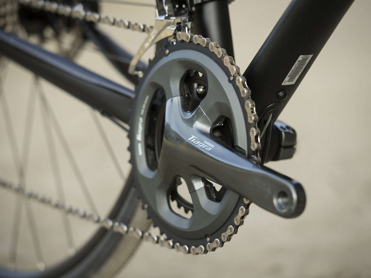 300 シリーズ Alpha アルミ製のフレームに、45cのタイヤまで装着できる幅広いタイヤクリアランス。調整可能な Strange Hold ドロップアウトで、ジオメトリーの細かなチューニングもでき、シングルスピード仕様も可能。カーボンフォーク、12mmスルーアクスル、10速 Shimano TIagra ドライブトレイン、上り坂で嬉しいワイドなギアレンジの11-34Tのカセット、フェンダーとラックマウント、全天候下で制動力を発揮するフラットマウント油圧ディスクブレーキ、そして幅広で安定性とトラクションの増した700x35c Schwalbe G-One タイヤといった特徴を備える。